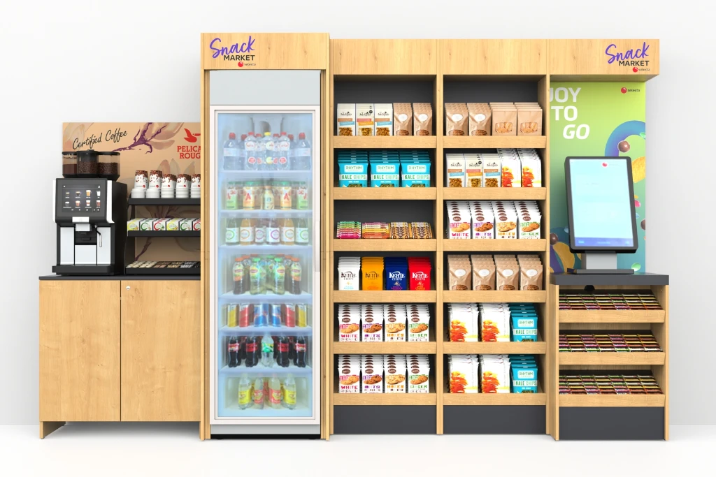 Mix-and-match modules (smart fridges, shelves, coffee corners, kiosks, hot meals) adapt perfectly to small spaces, high-traffic areas or large multi-zone layouts.