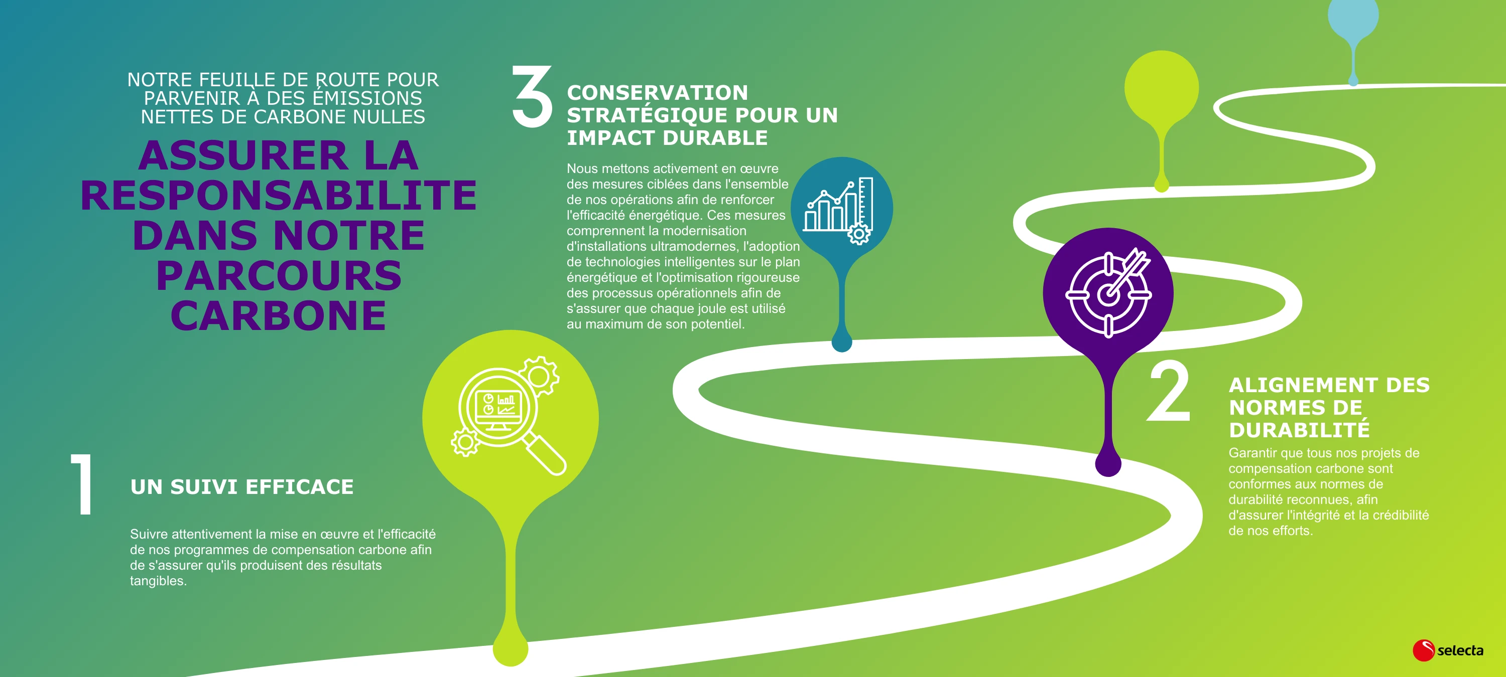 Chez Selecta, nous nous fixons un objectif décisif : atteindre la neutralité carbone dans le cadre de nos activités directes d'ici à 2030. Les champs d'application 1 et 2 englobent toutes les émissions directes de gaz à effet de serre provenant de nos installations et les émissions indirectes provenant de la production d'énergie achetée. Notre feuille de route vers la neutralité est un engagement envers notre planète et les générations futures.