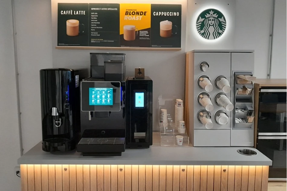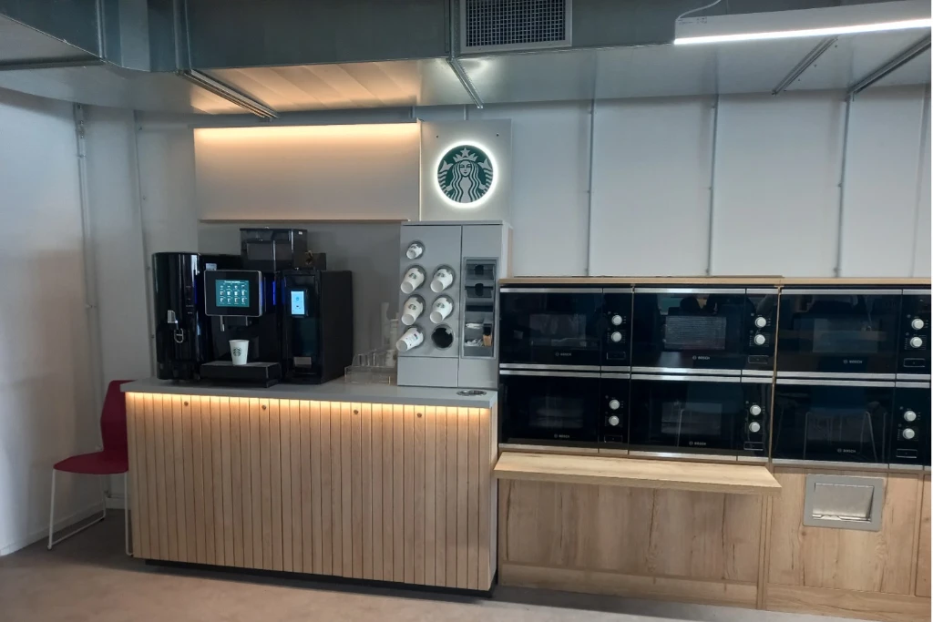 Starbucks concept with Ice Maker Module: Slated for launch in March 2024 at the new campus cafeteria, this solution introduces a premium coffee experience branded by Starbucks, complete with an ice maker module for cold beverages.