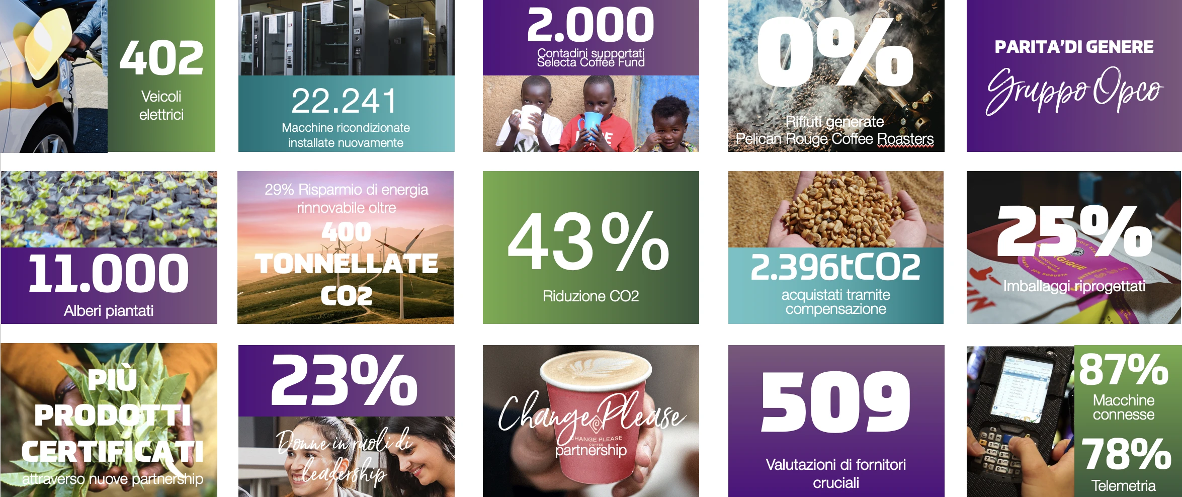 Scoprite il nostro impegno per un futuro sostenibile con i nostri principali risultati nel 2023. Dall'implementazione di 22.241 macchine circolari al sostegno di 2.000 agricoltori e alla piantumazione di 11.000 alberi, i nostri sforzi per ridurre le emissioni di CO2 e migliorare l'uso di energia rinnovabile dimostrano la nostra dedizione ad avere un impatto positivo.